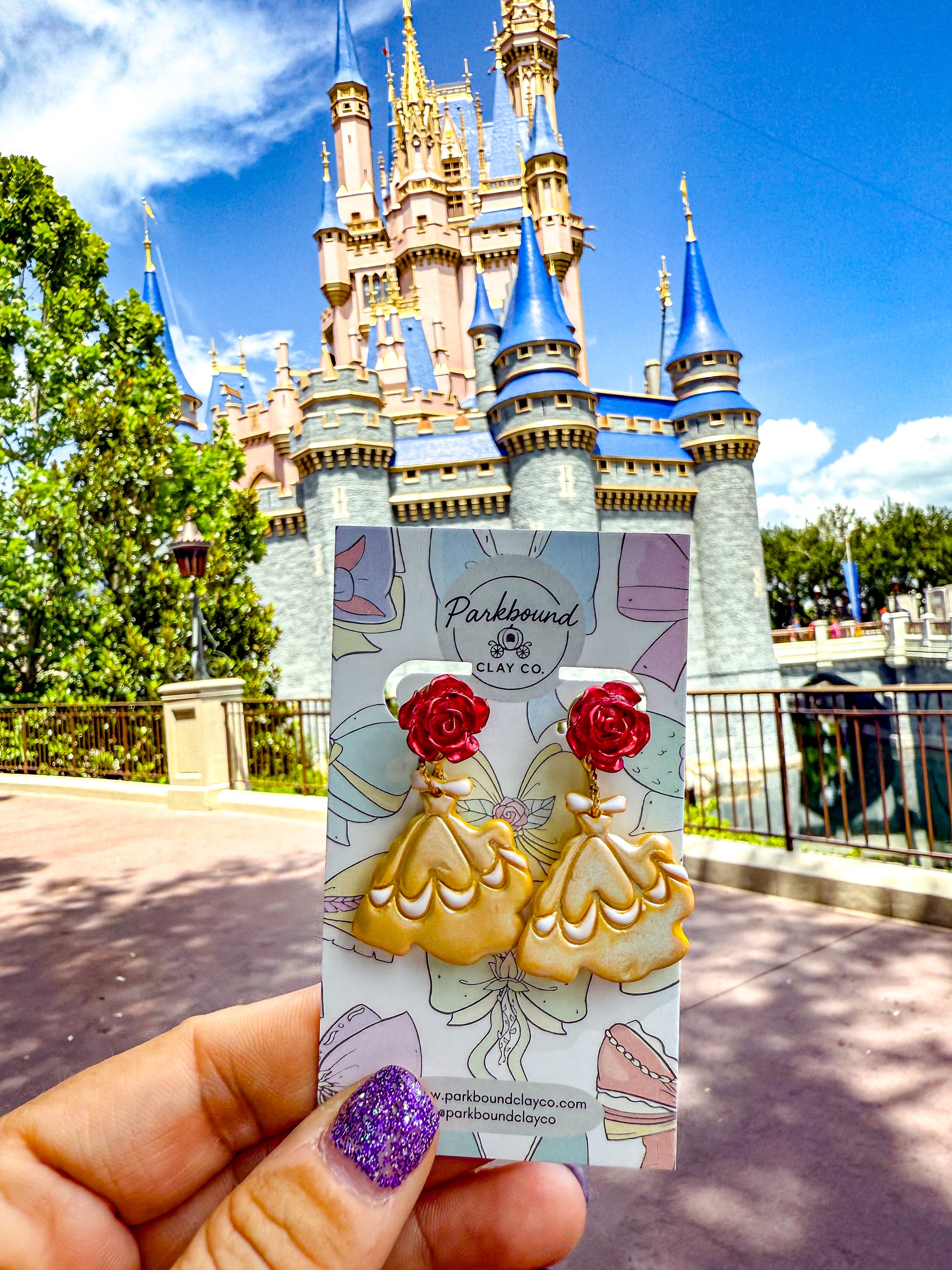Belle Ballgown Earrings | Beauty and the Beast Rose Studs | Disneybound Jewelry | Princess-Inspired Polymer Clay Earrings
