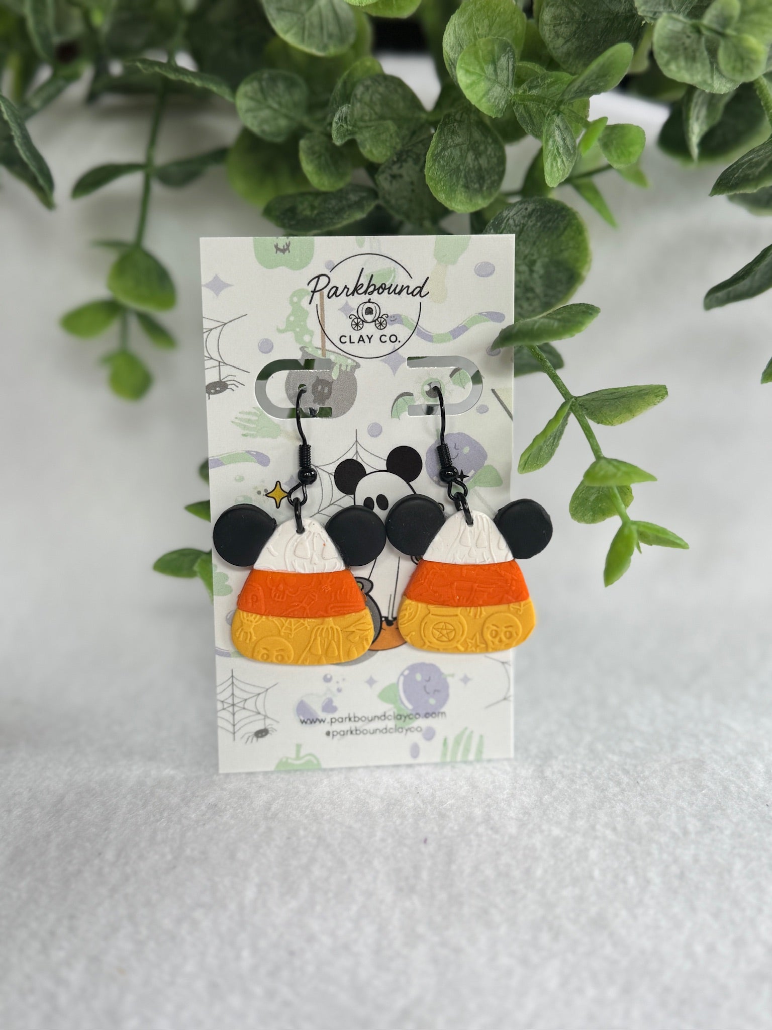 Trick or treat yourself! These Candy Corn Mouse earrings are a festive favorite with their cheerful stripes of yellow, orange, and white, all topped with iconic mouse ears. With subtle Halloween embossing and lightweight comfort, they’re a perfect way to add some sugar-sweet fun to your spooky season style.