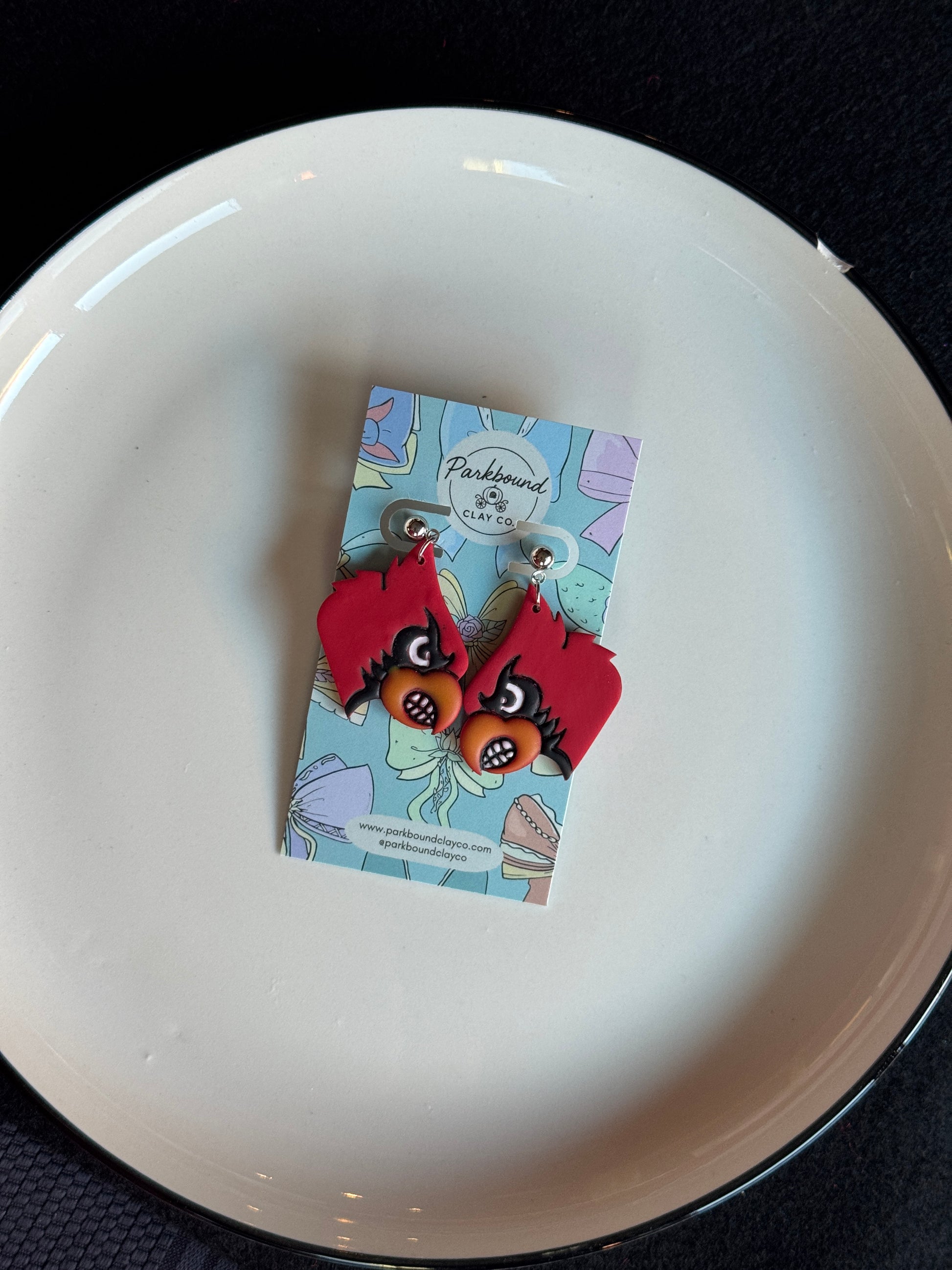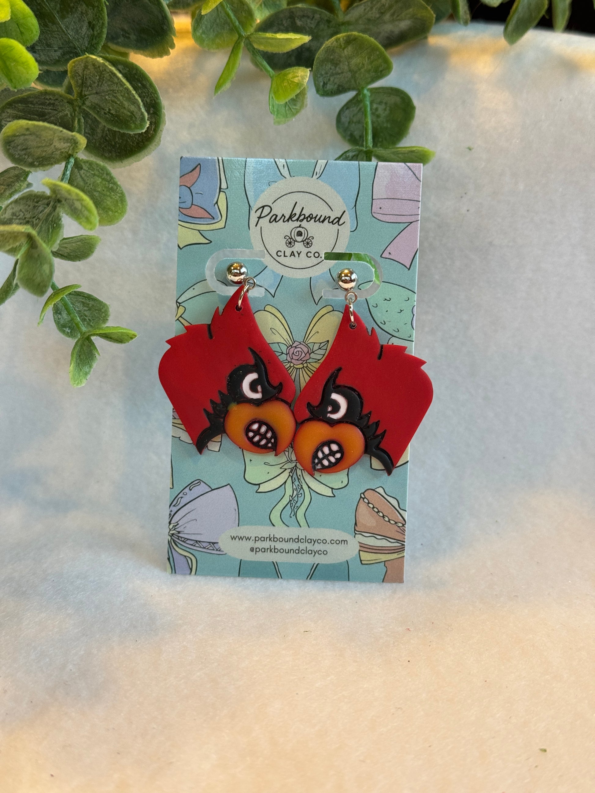 Bring bold spirit to your style with these handcrafted cardinal-inspired earrings! Made from lightweight polymer clay, these vibrant red earrings feature fierce black and orange detailing that perfectly captures the energy of the bird.