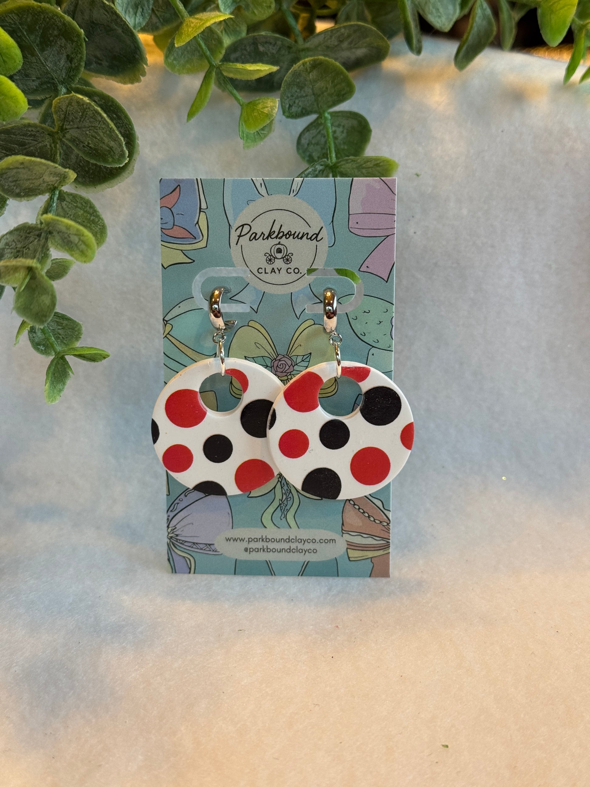 Playful, bold, and a little bit retro—these red and black polka dot earrings are ready to make a statement! Handcrafted from lightweight polymer clay, the circle drop design adds a fun pop of personality while staying comfortable for all-day wear. Perfect for football or basketball games, polka dot fans, or anyone looking to add a touch of whimsy to their look.