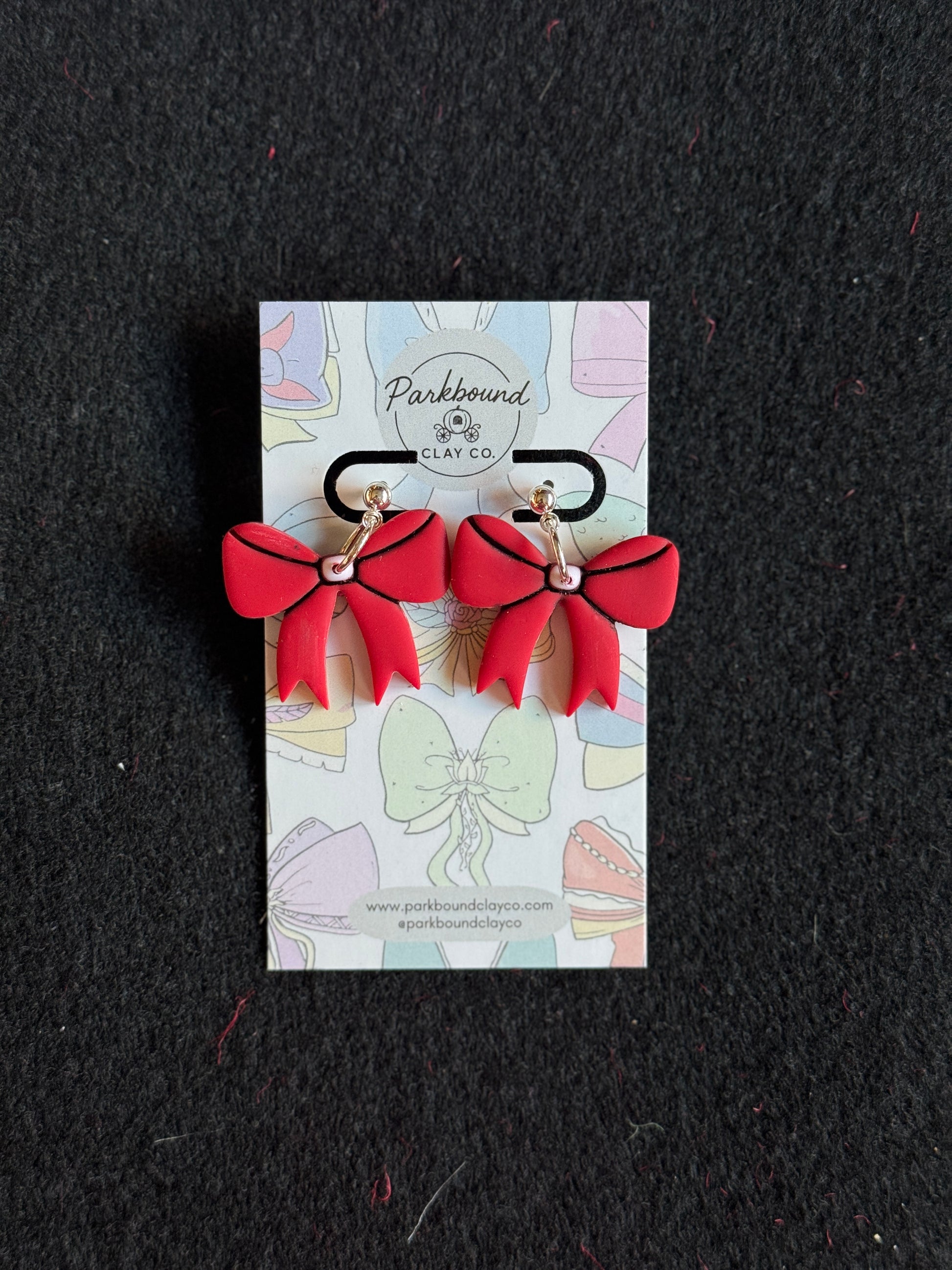 Add the perfect pop of charm with these red bow earrings! Handcrafted from lightweight polymer clay, these dainty bows bring a playful yet classic touch to any outfit. Whether you’re dressing up for a festive occasion or supporting your favorite Cards team, these earrings are sure to tie it all together.