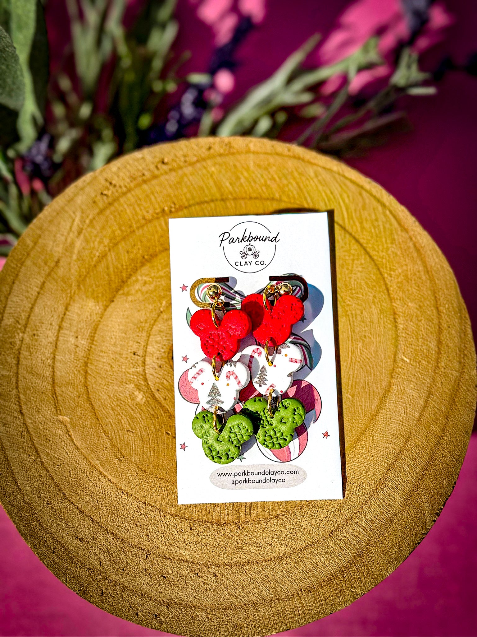 Holiday Mickey Head Trio Earrings | Christmas Polymer Clay Earrings