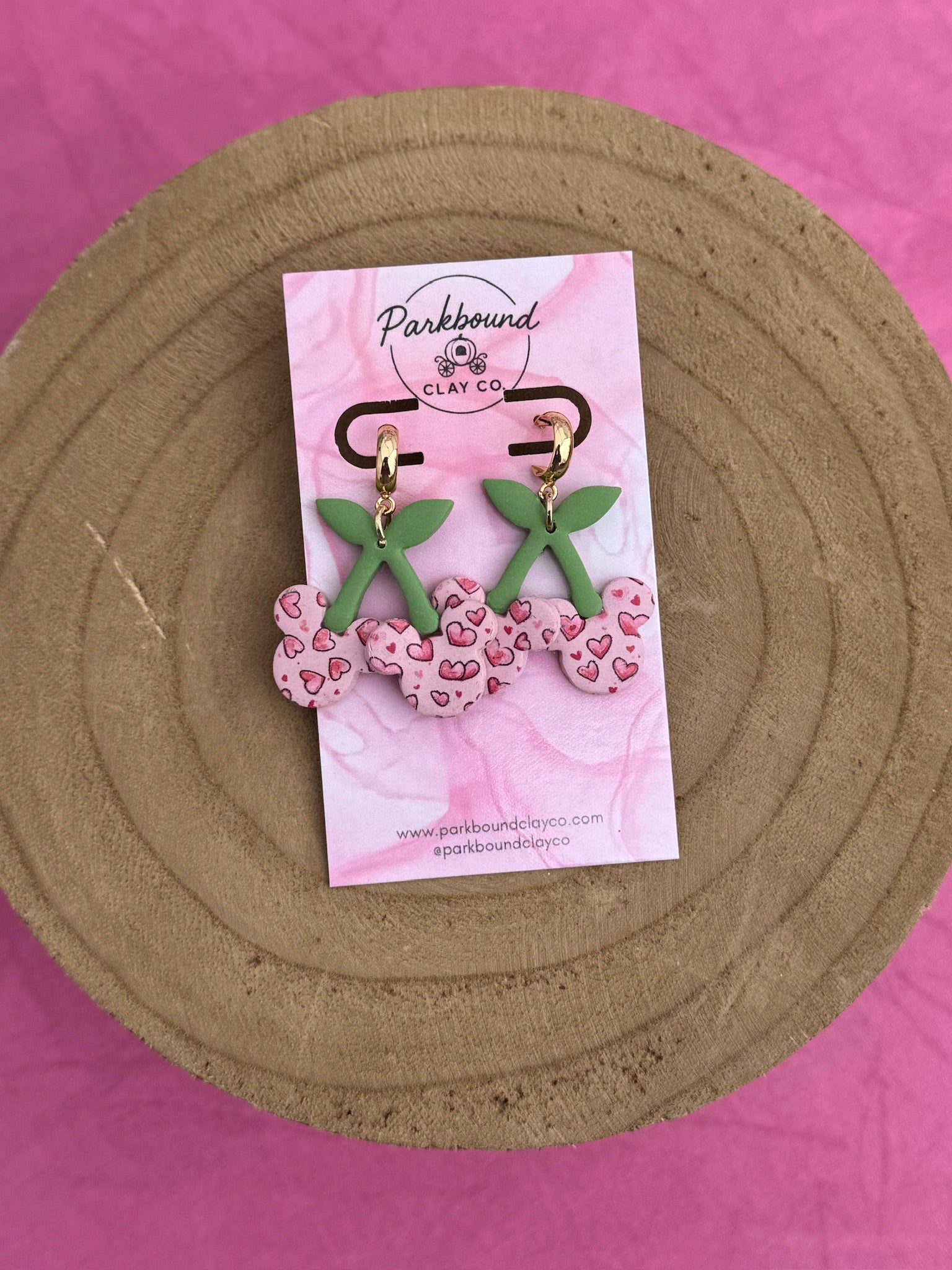 Mickey Cherry Dangle Earrings – Pink Hearts