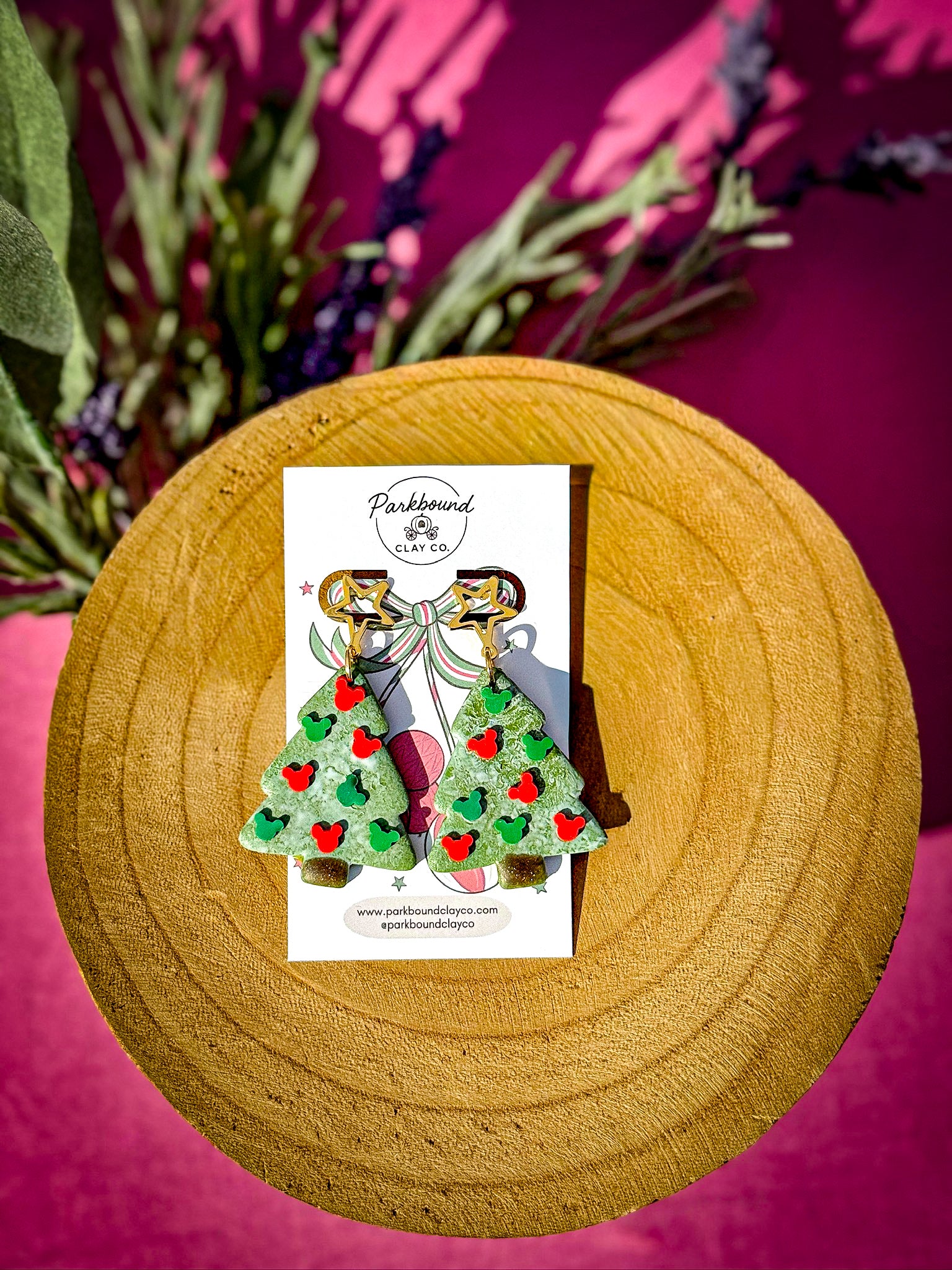 šš Add a little Disney magic to your holiday look with these Mickey Christmas Tree Earrings! Each pair is handcrafted from polymer clay and decorated with festive red and green Mickey-shaped ornaments for the perfect blend of holiday cheer and park-day sparkle.