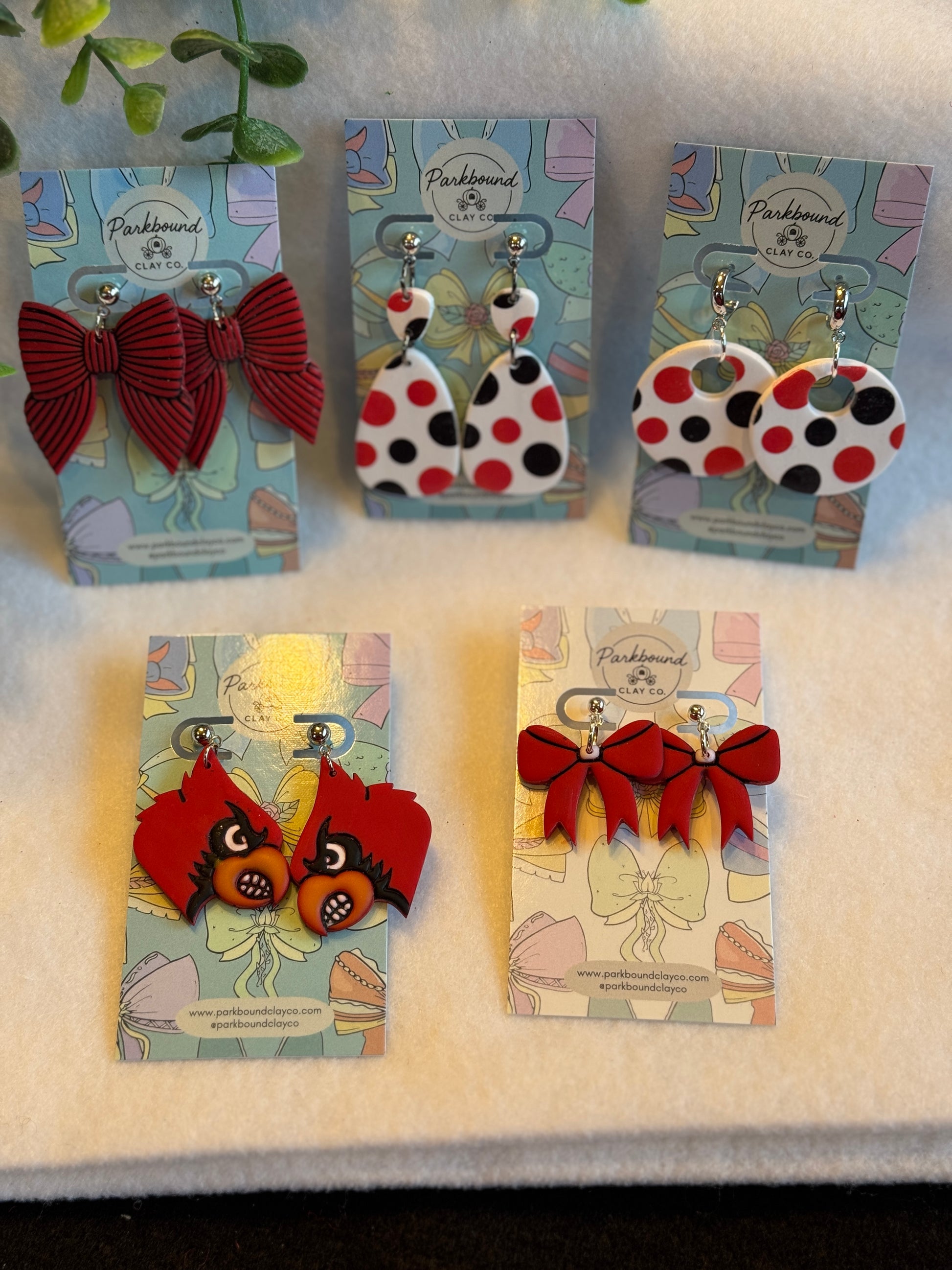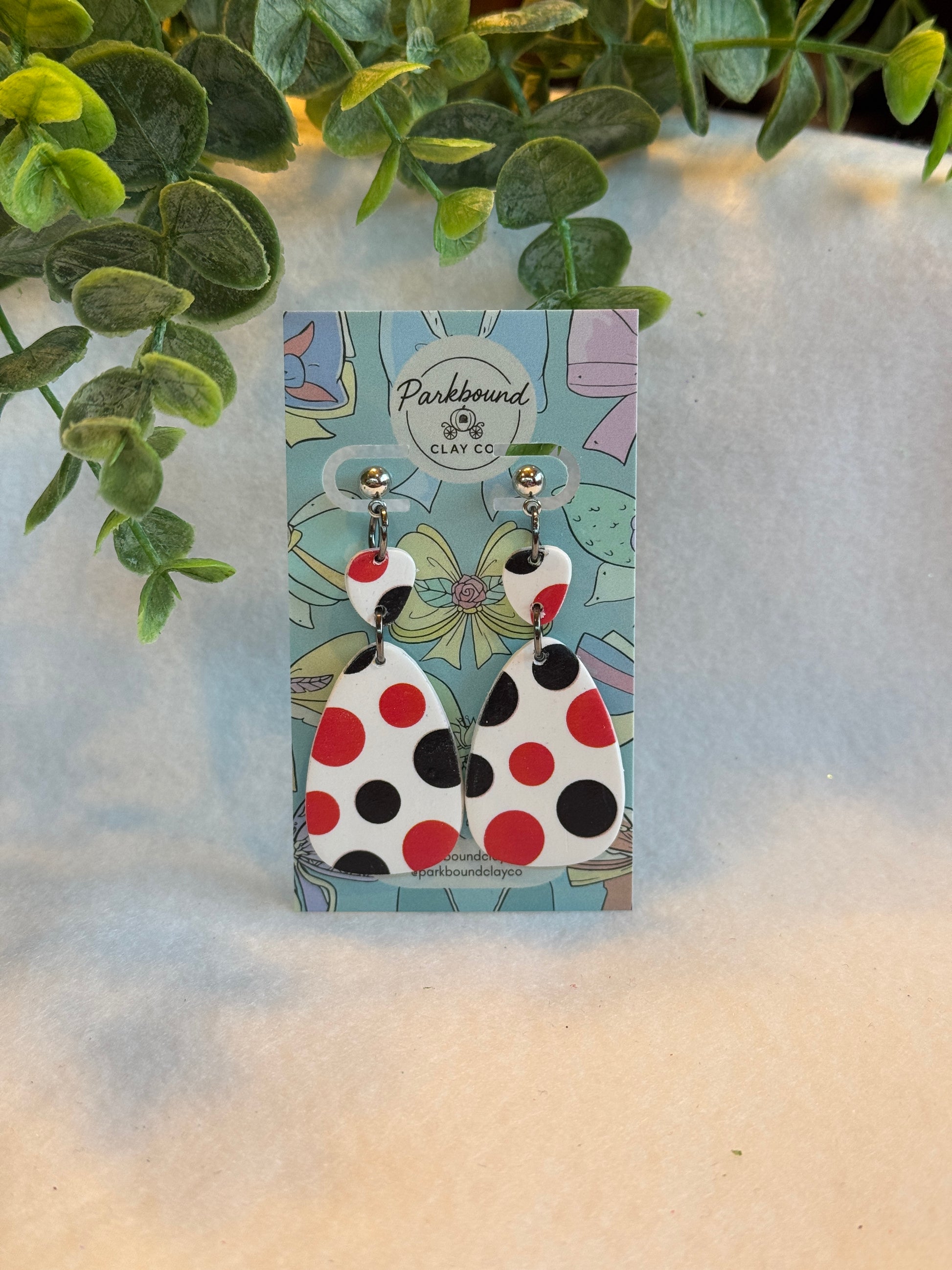 Playful, bold, and a little bit retro—these red and black polka dot earrings are ready to make a statement! 🎉 Handcrafted from lightweight polymer clay, the rain drop design adds a fun pop of personality while staying comfortable for all-day wear. Perfect for cards lovers, polka dot fans, or anyone looking to add a touch of whimsy to their look.