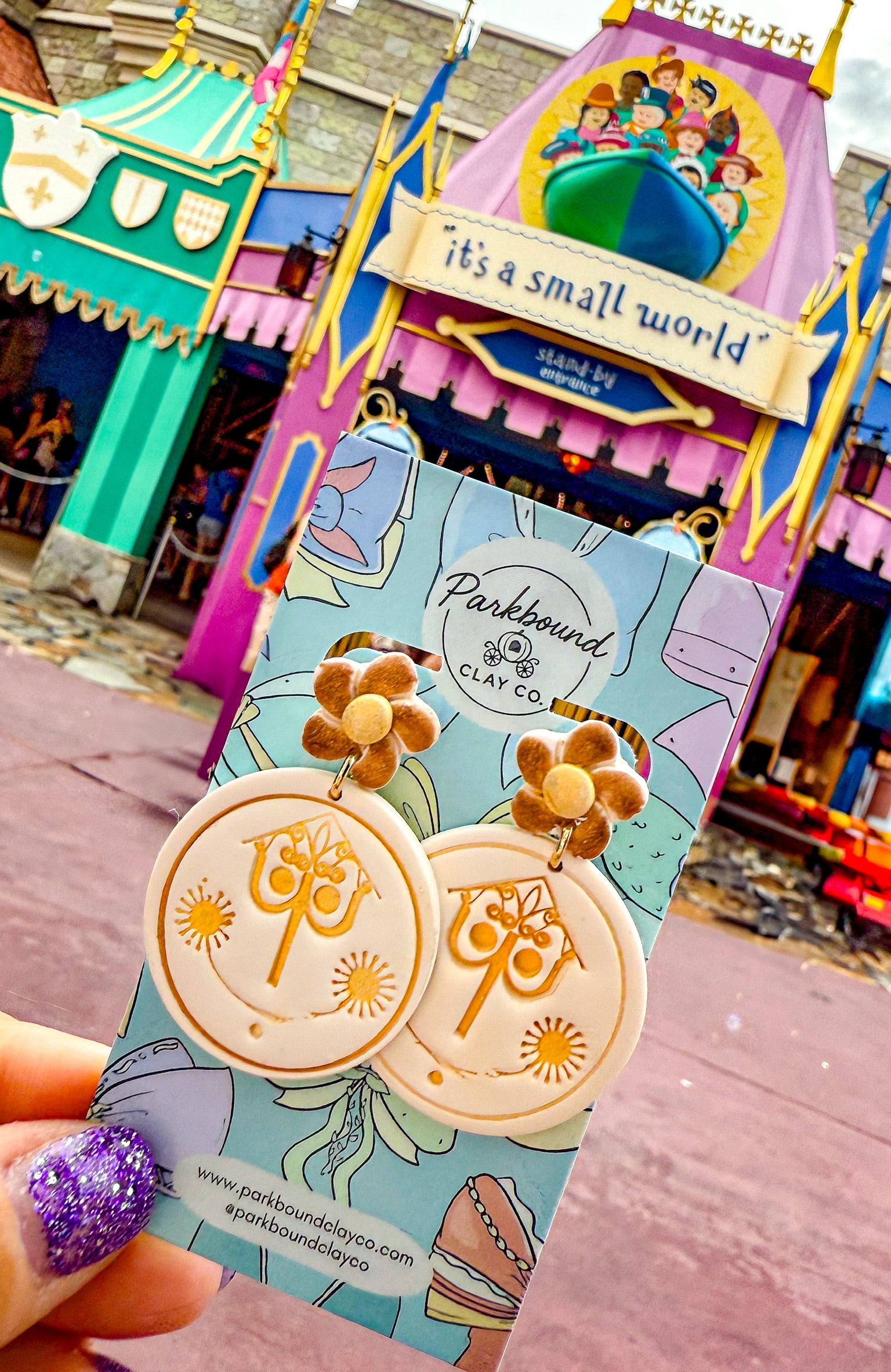Small World Clock Earrings | Mary Blair Inspired Floral Dangles | it’s a small world Polymer Clay Earrings