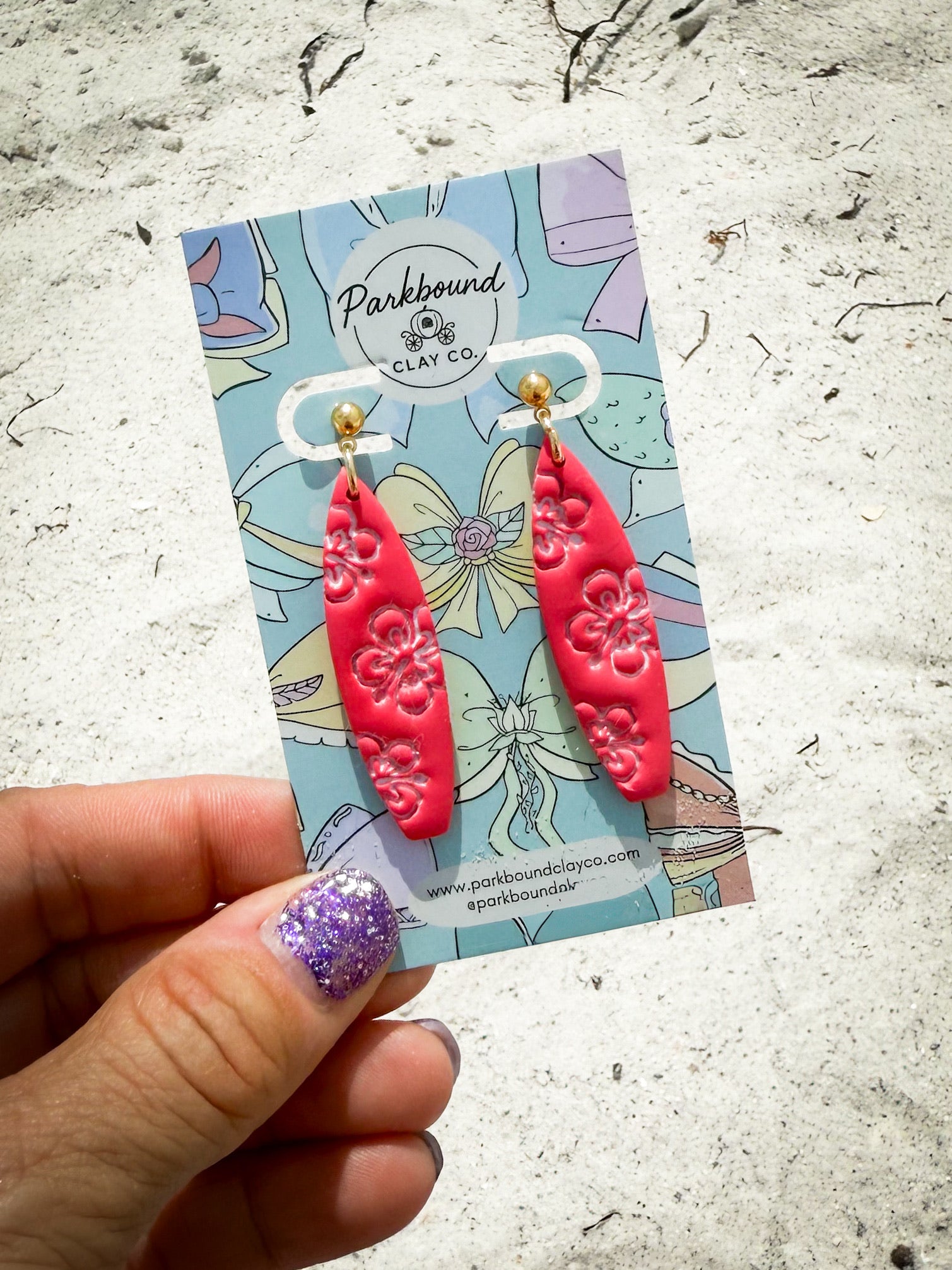 Stitch Surfboard Earrings | 626 Inspired Pink Floral Dangles | Beachy Polymer Clay Earrings